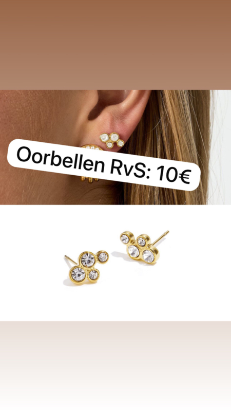 RVS oorbellen goud met 4 steentjes